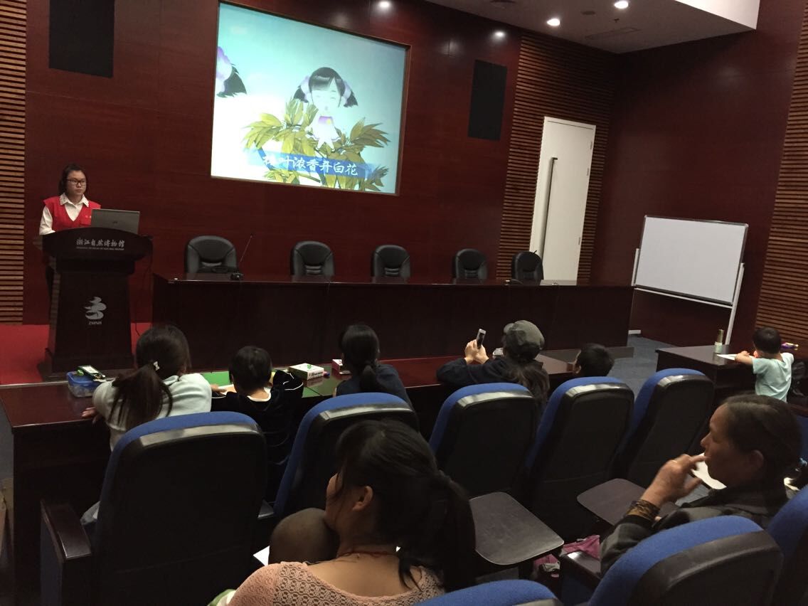 中午12点,授课小分队以及志愿者们出发前往浙江自然博物馆。抵馆后,志愿者一行人与馆内工作人员沟通好后,便到相应的多媒体教室准备好前期工作。2点半,小朋友以及家长陆陆续续的到场。之后,活动便随着一首植物认知童谣正式开始了。B.D.服务社的小教师在前台认真地给台下小朋友们讲述相关的植物知识。期间,她也不忘与小朋友们进行游戏互动,现场气氛和谐轻松。小朋友们都积极参与,其中还会提出自己“独特”的疑问。紧接着是环保知识的讲解。这一次,小讲师为亲子们讲述垃圾分类的重要意义。小朋友们对垃圾分类有一定的了解,游戏中积极抢答,赢得了丰富奖品。