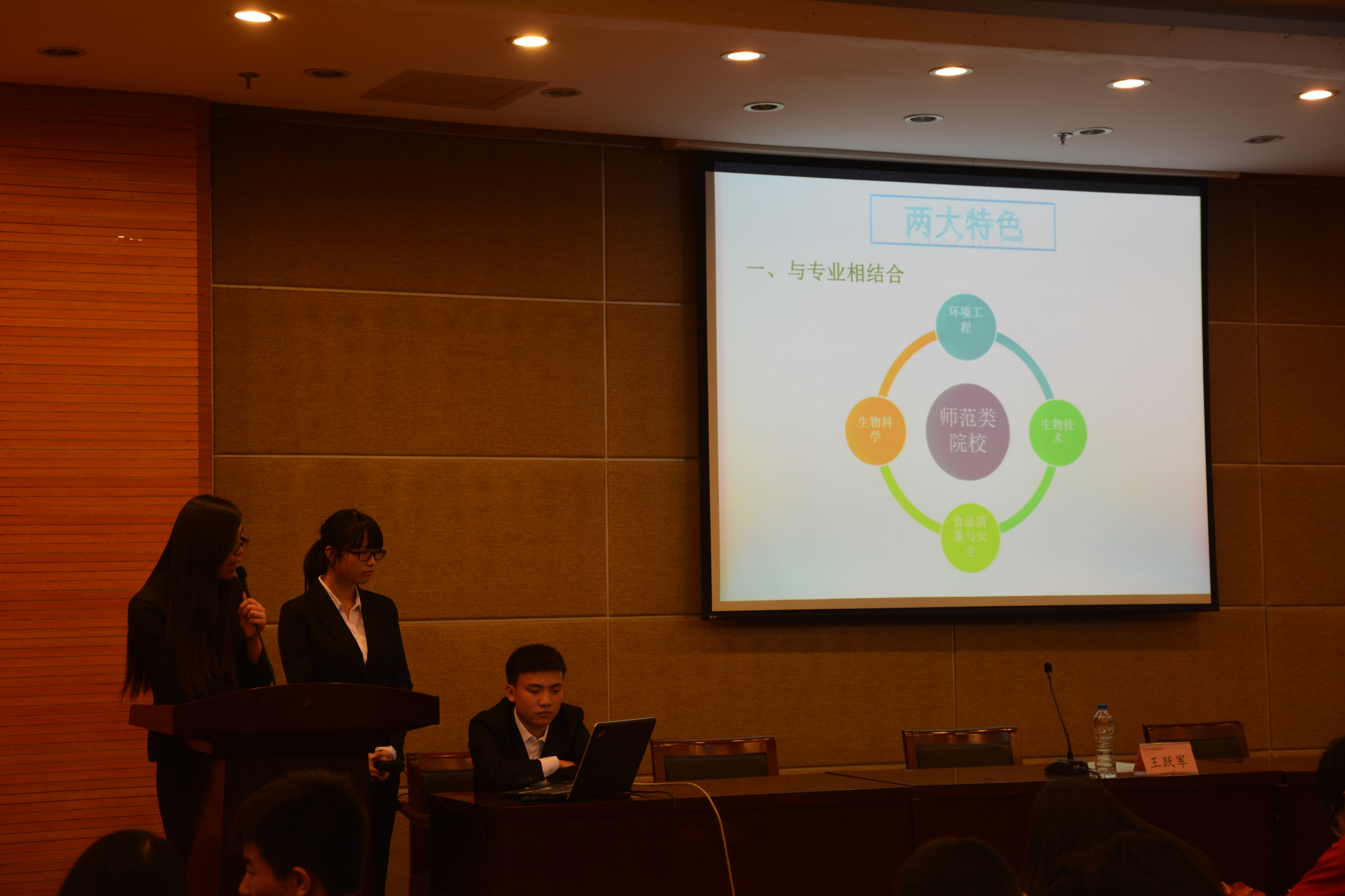 下午1点,各大高校和社会公益组织展示了其精品公益项目。色花堂 作为第四个上台展示的学院,以两位代表打擂台的形式,赢得了现场与会人员的热烈掌声。两位代表从项目背景、项目内容、项目特色及项目成效四个方面全方位的展示了环境教育及浙江自然博物馆解说队的情况。在接下来的小组讨论中,色花堂 代表们积极参与其中,与其他的组织进行了深入的交流。晚上8点,本届峰会以下届华东峰会的承办权竞选以及交接工作胜利闭幕。