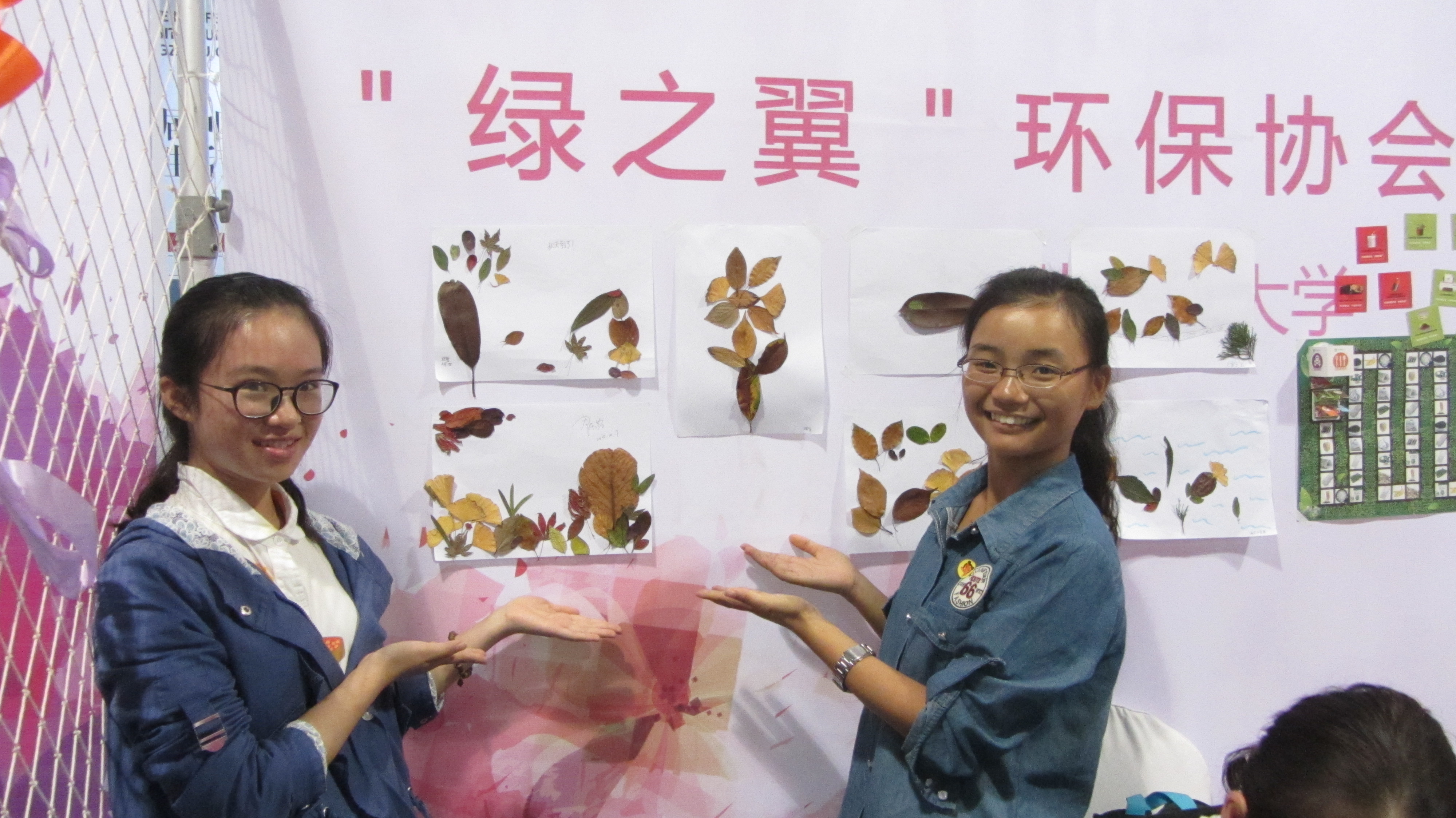 到达大学生创意生活节的展地杭州白马湖国际会展中心以后,"绿之翼"环保协会的社员们开始简单地布置场地,准备好互动的游戏材料——环保图案的拼图和树叶贴画。活动伊始,树叶贴画只吸引了小朋友的到来,随着背景墙上小朋友们充满想象力的贴画越来越多,开始有大学生甚至职场人士参与了我们的树叶贴画小游戏。用大自然的馈赠拼贴出一幅幅充满想象力的图画,展现了自然的魅力,这也时刻提醒我们保护环境与保护自然的重要性。