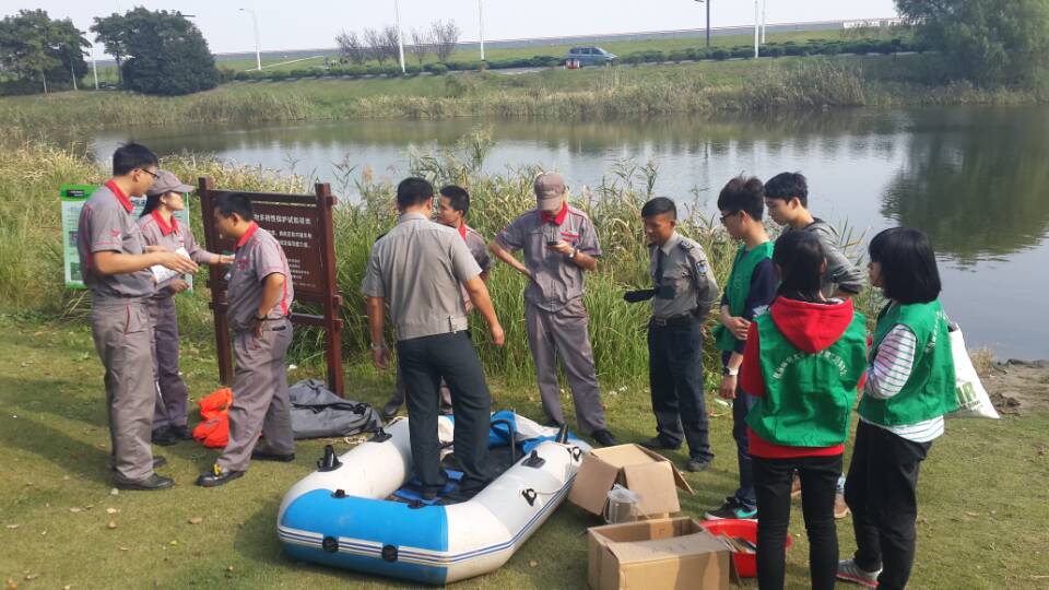 下午两点半活动准时开始,由主持人简单介绍此次活动后,在场的人员依次分好组,各组在专业人士的带领下分散到下沙湿地的各个区域有序地开展活动。此次活动主动主要进行的调查有:1、湿地水生植物调查,水质和底部淤泥调查 2、湿地浮游生物调查 3、湿地岸边动植物调查 4、岸边垃圾清理。在活动过程中所有人都积极参与其中,并有媒体在现场分别对此次活动的主要负责人:优科豪马的总经理和"绿之翼"沈宇雯部长进行了采访。