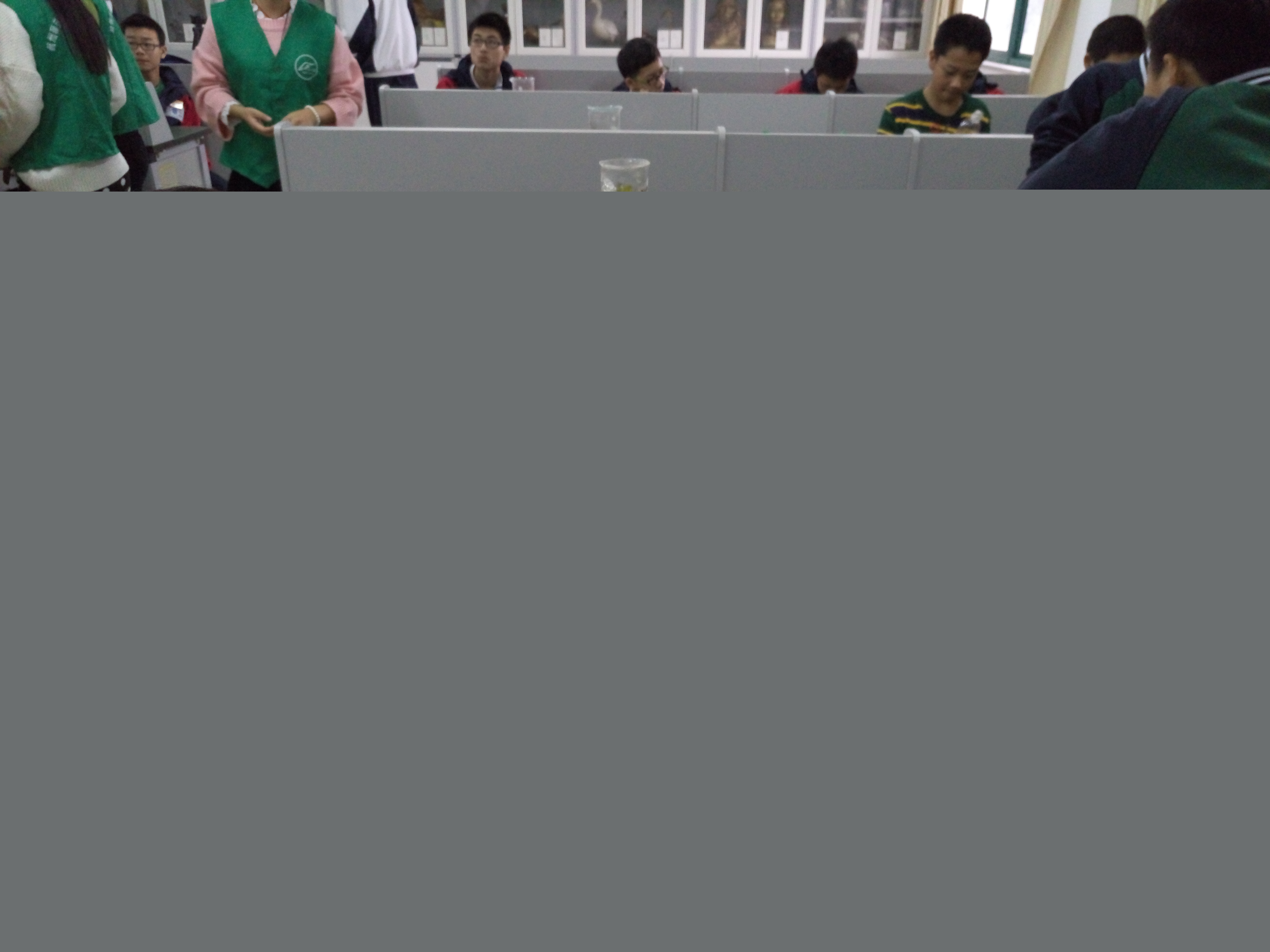 天气虽寒,但是拱宸中学环保社团同学的热情不减。当同学们看到协会成员进入社团活动教室,同学们便立即认出了一个多月前带领他们参加环保宣传活动的科研部副部长徐境,都热情地欢迎四位大姐姐的到来。在社团负责老师和其他三位成员的协助下,徐境同学首先简单地为同学们介绍了叶脉书签的制作原理、方法,同学们都认真倾听,做好记录,接着便开始制作叶脉书签。考虑到使用酒精灯和氢氧化钠过程中所存在的安全问题,协会成员和指导老师负责煮树叶的工序,同学们都围坐在实验台旁,全神贯注地看着,等待着;随后,协会成员将处理过的树叶用镊子夹出,放在盛有清水的碟子上,同学们早已跃跃欲试,手中拿着废弃的牙刷,小心翼翼地拍打着叶肉,生怕将叶脉破坏;协会四位成员和指导老师则在旁边指点。经过近半个多小时的努力,一枚枚精致的叶脉书签在同学们的手中诞生。同学们拿着书签,开心地和协会成员合影留念,阵阵笑声从教室中传出。