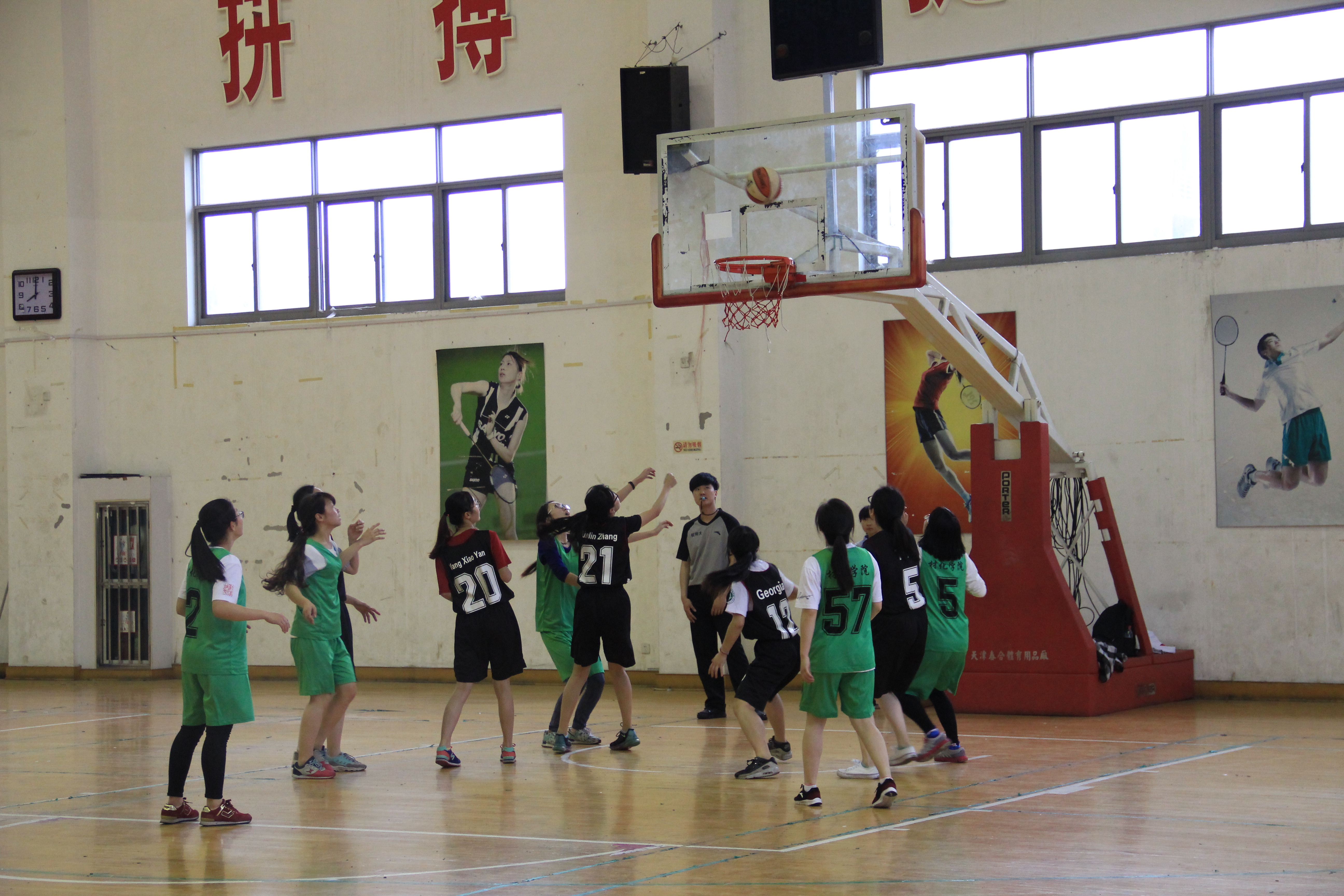 色花堂 色花堂 是由曾锦树为队长组成了一支男篮代表队,由陈梓莹为队长组成了一支女篮代表队,代表色花堂 参加此次篮球联赛。在经历一番热身后,身着黑色球衣的生科队员与披着绿色队服的材化队员的男篮比赛正式开始。比赛一开始,篮球健儿们主动出击,以矫健熟练的动作迅速传球,直逼篮板。团队的队员们配合默契,一个眼神,一个动作,就能知道彼此之间的传篮含义。双方队员都迅速进入状态,个个雄姿英发。在场上你争我夺、你攻我守,展开了一轮轮的投球。投球动作帅气利落,双方队员激情高涨,争夺异常激烈。同时一旁有来自各自学院的同学呐喊助威,球场气氛十分活跃。