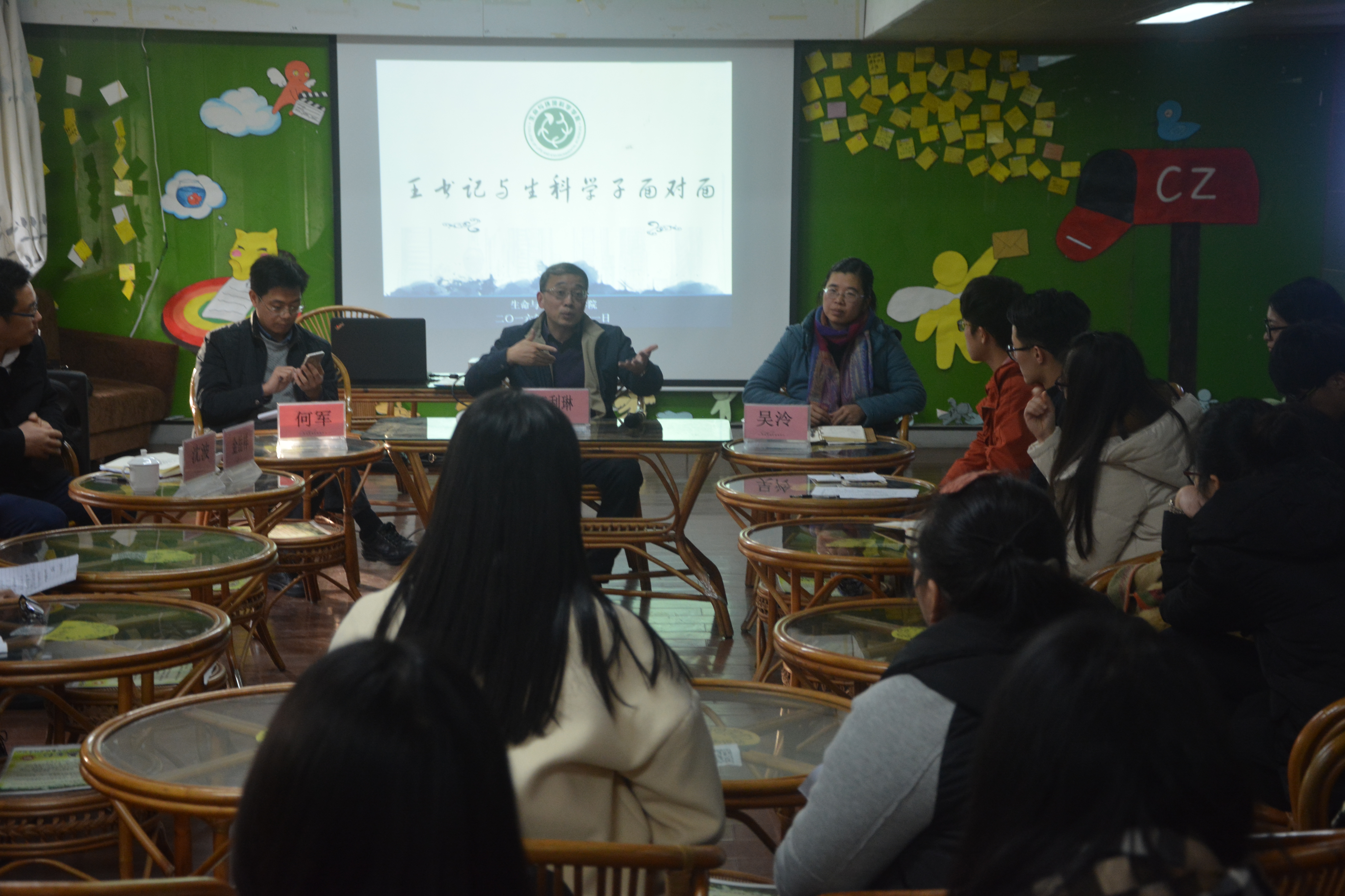2016年12月21日星期三,杭州师范大学色花堂 在大学生成长指导中心开展了一场别开生面的座谈会,邀请校党委副书记王利琳与生科学子面对面,与会的还有校学工部部长何军、教务处副处长吴泠、院教学副院长沈波和院党委副书记金岳祥等。