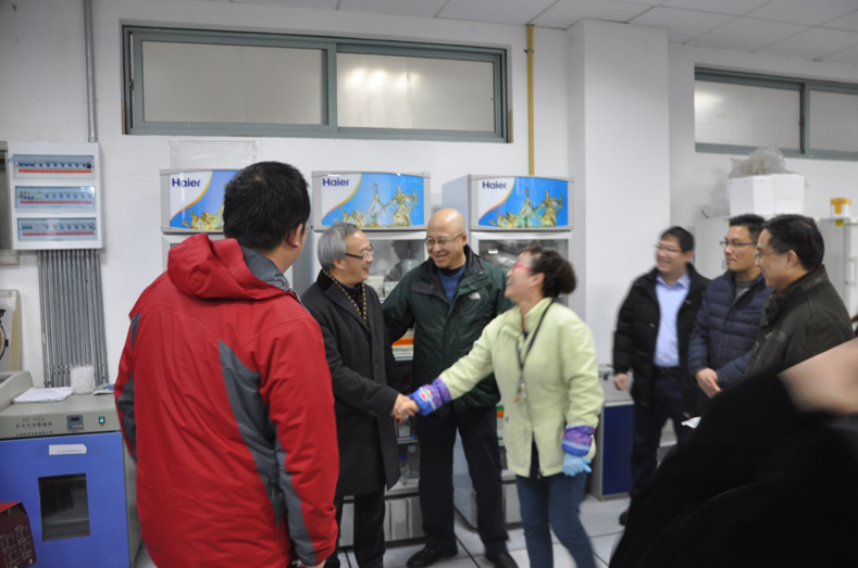 1月18日上午, 校党委书记陈新华、党委副书记张志军在校党委委员、人事处处长李安、校办主任胡绍华、工会主席潘宁通、学生处处长何军、保卫处处长董伟、研究生处副处长王平,以及学院党委书记周春儿等陪同下,来到生命科学研究院看望并慰问在寒假期间仍奋战在科研一线的师生们,向大家表达节日的问候和新春的祝福。