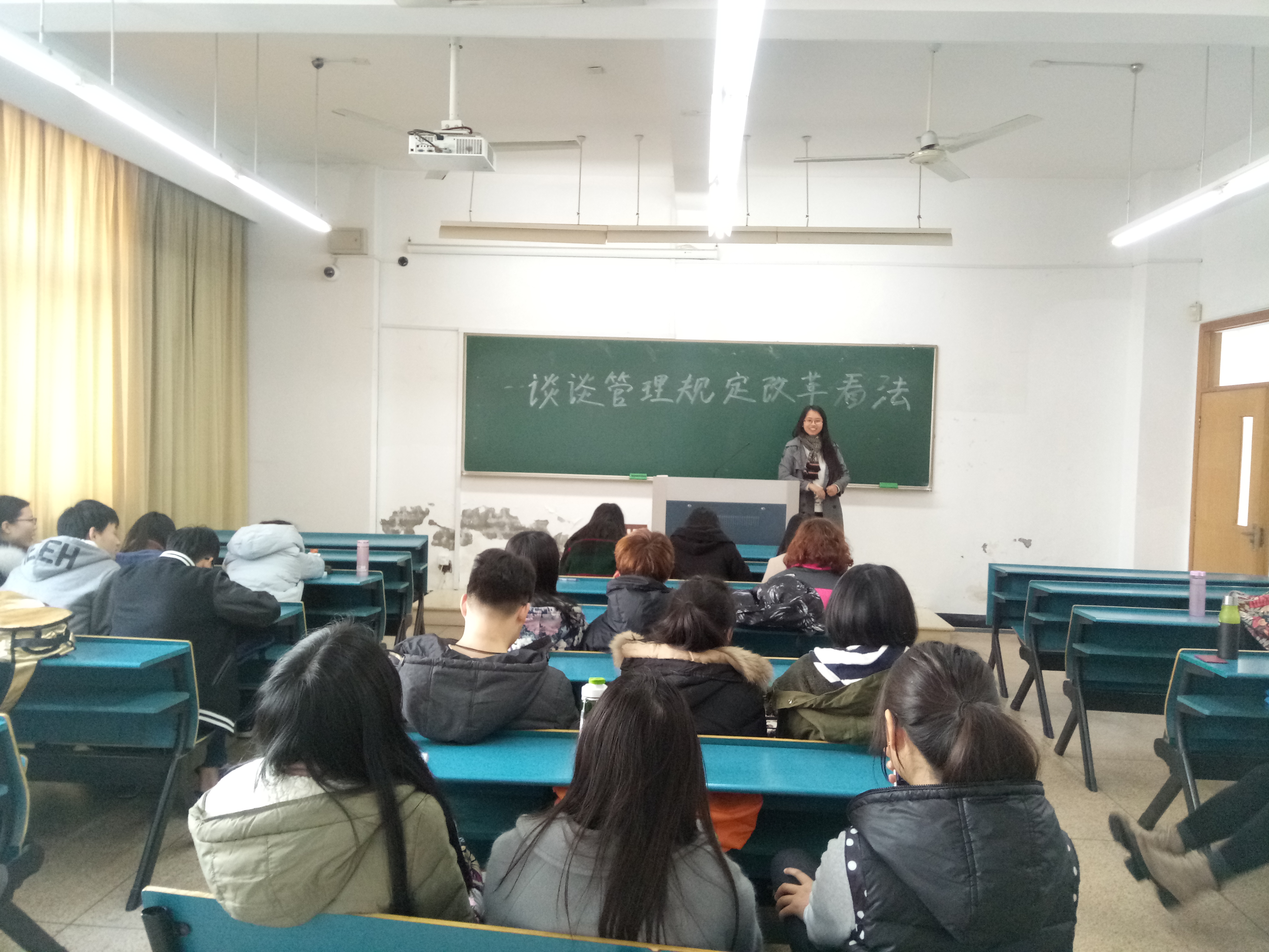 环工的同学们就新《规定》的改变部分做了相关介绍。新《规定》鼓励青年团员冲破局限,树立勇于创新的意识,彰显出青春风采帮助同学们树立正确的人生观、价值观,让同学们更多的感恩社会,使同学的感情得以升华。其中第三十条中“未经批准连续两周,未参加学校规定的教学活动的予以退学处理”尤其引起了一些同学的注意。同学们也意识到对于一些不公正的处分,学生也可以行使自己的权利向相关机构进行申诉,明确了自己的权利与义务。