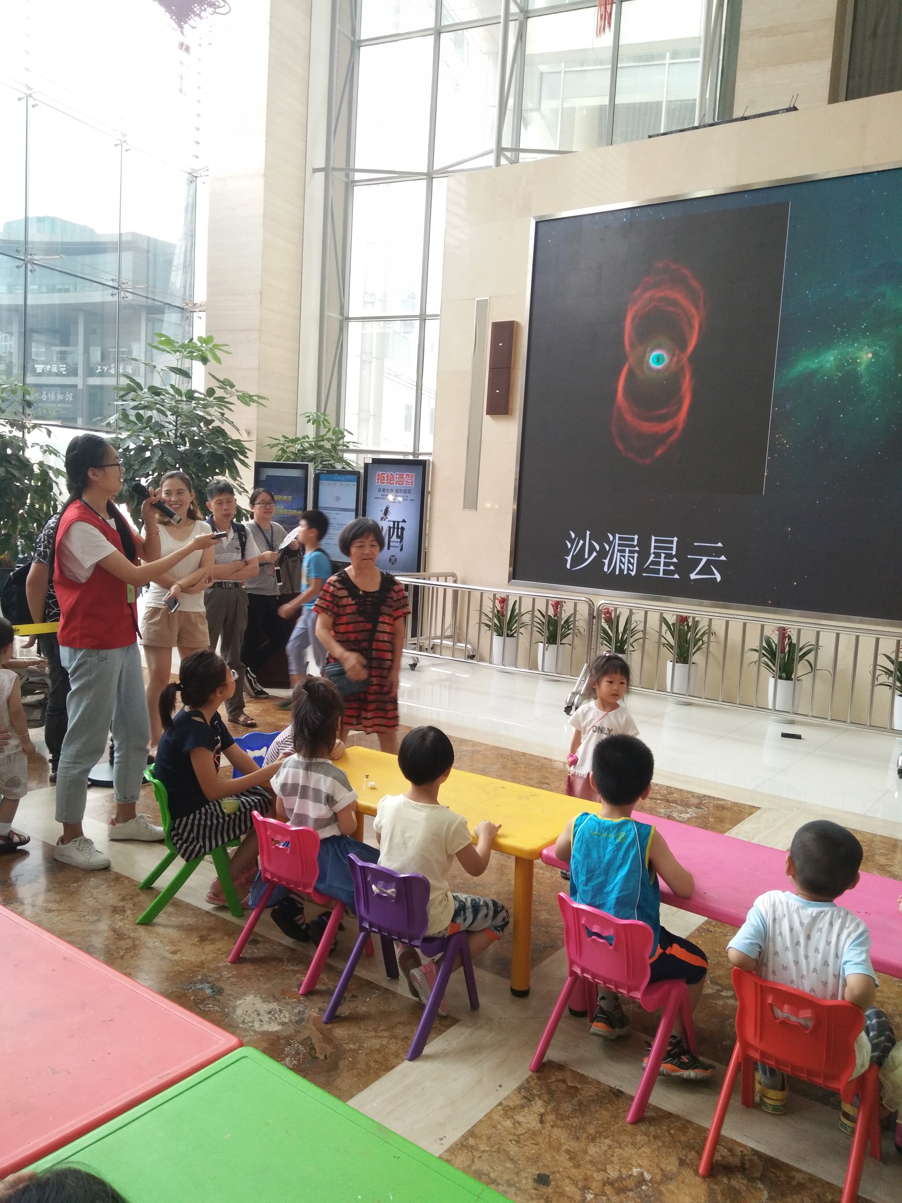 七月八日上午,色花堂 B.D.服务社“环保小课堂”小分队在浙江自然博物馆开展了“星空风采我知道”——星云瓶制作亲子活动。
