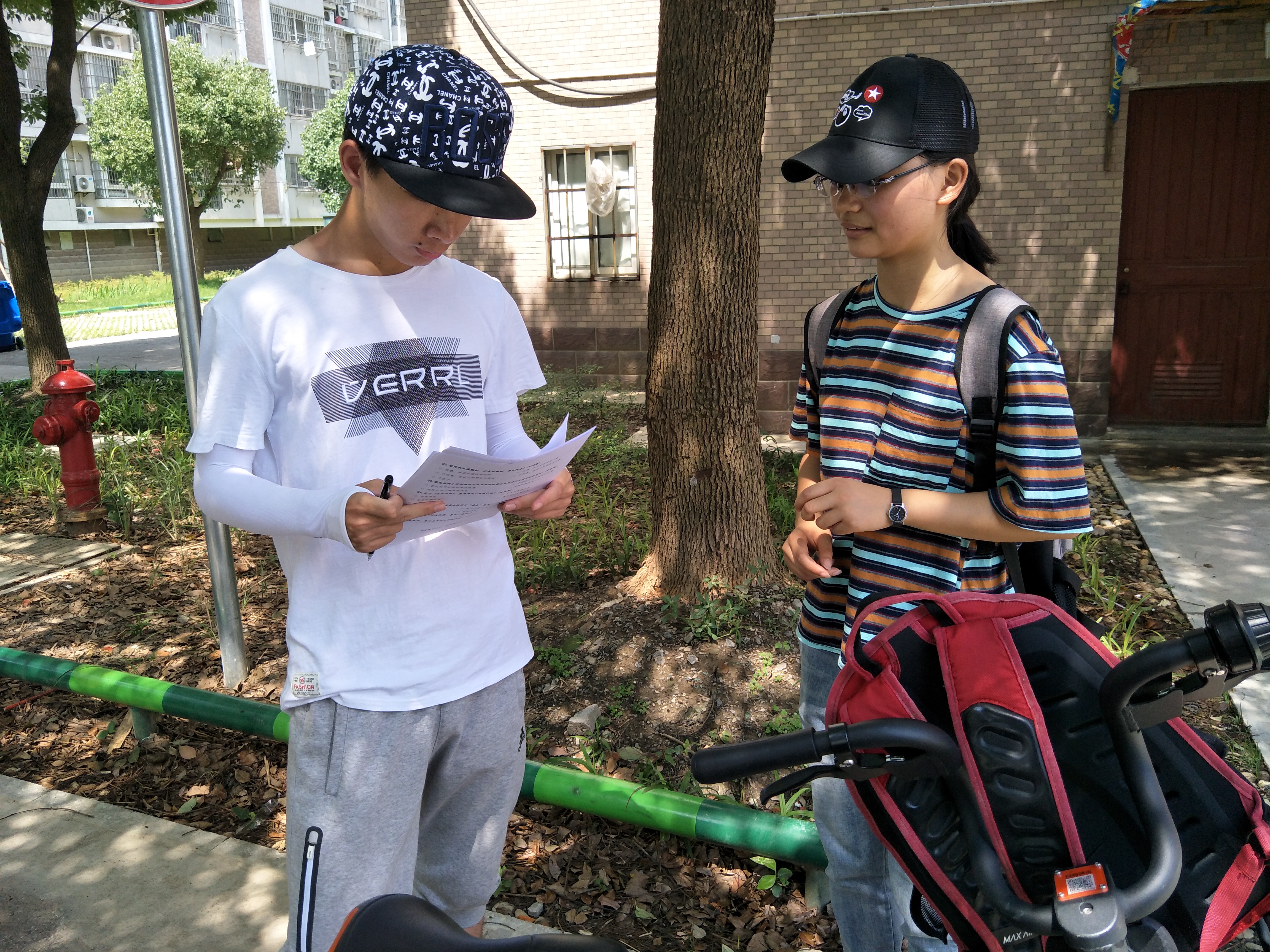 由于天气比较炎热,社区街道上的行人较少。只有几位老人在阴凉处下象棋、乘凉。由于老人不识字无法填写调查问卷,所以刚开始任务的进度较为缓慢。
