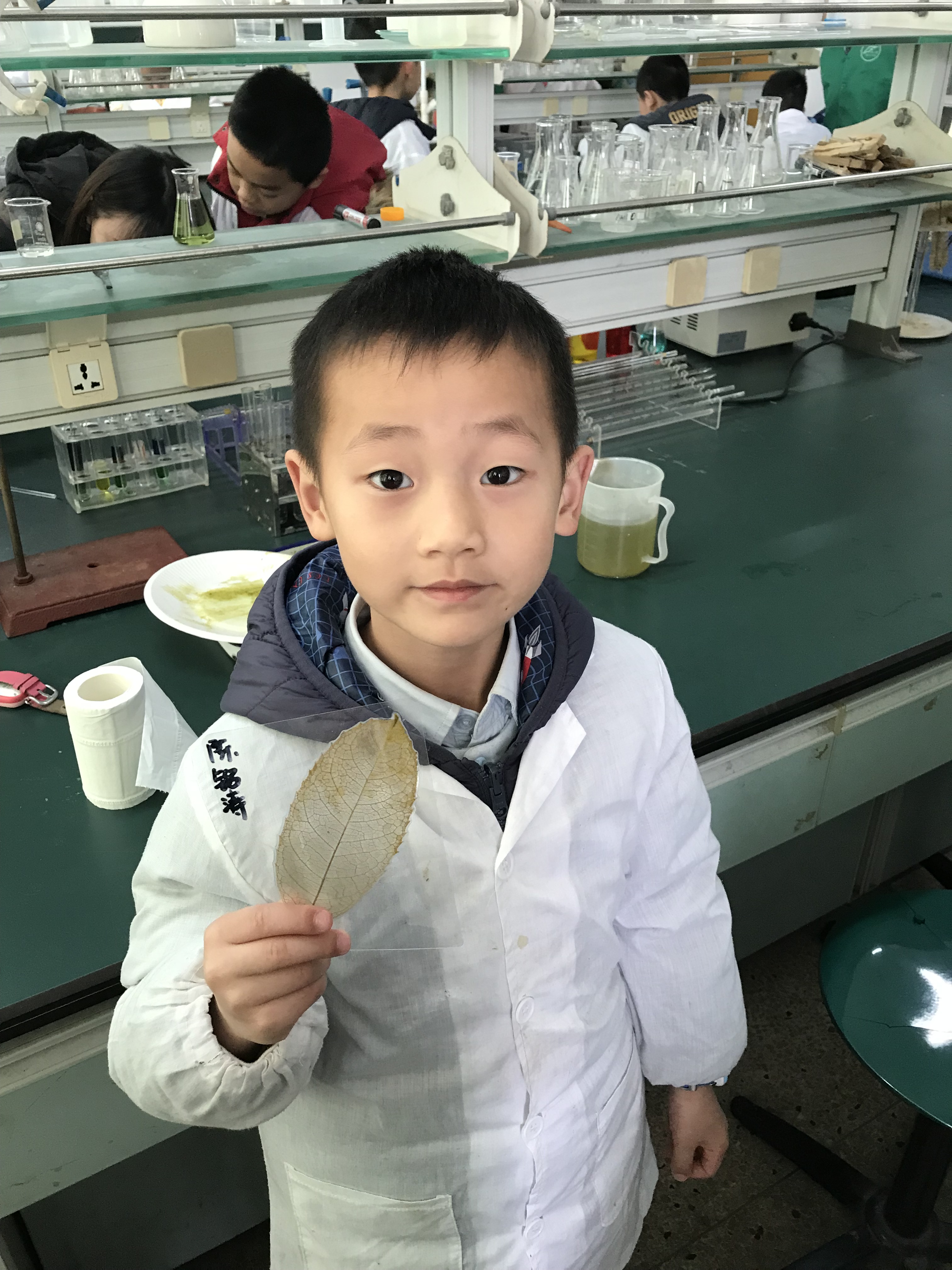 活动正式开始前,由“绿之翼”组织带领小朋友到实验室先进行准备活动。小朋友们热情高涨,穿好志愿者为他们准备好的实验服,坐在自己的位置上,期待地看着实验室里的器材。在简单介绍了小实验的步骤后,活动正式开始了。几个实验以水为基础而展开,让小朋友亲身感受水的魅力,从而领悟到水源的重要性。活动现场,每个小朋友都十分积极地做实验,虽然是三个人一小组,但每个组的小朋友都争先恐后,活跃度十分高。小朋友总会提出稀奇古怪的问题,也会有些令人震惊的回答,“你知道为什么它们不会融汇在一起吗?”“不知道,就像你不知道为什么夸克是最小的粒子一样”,他们的想法天马行空,令志愿者们刮目相看。小朋友的认真参与让这几个小实验都做得十分成功,他们也对自己的成果表示满意。