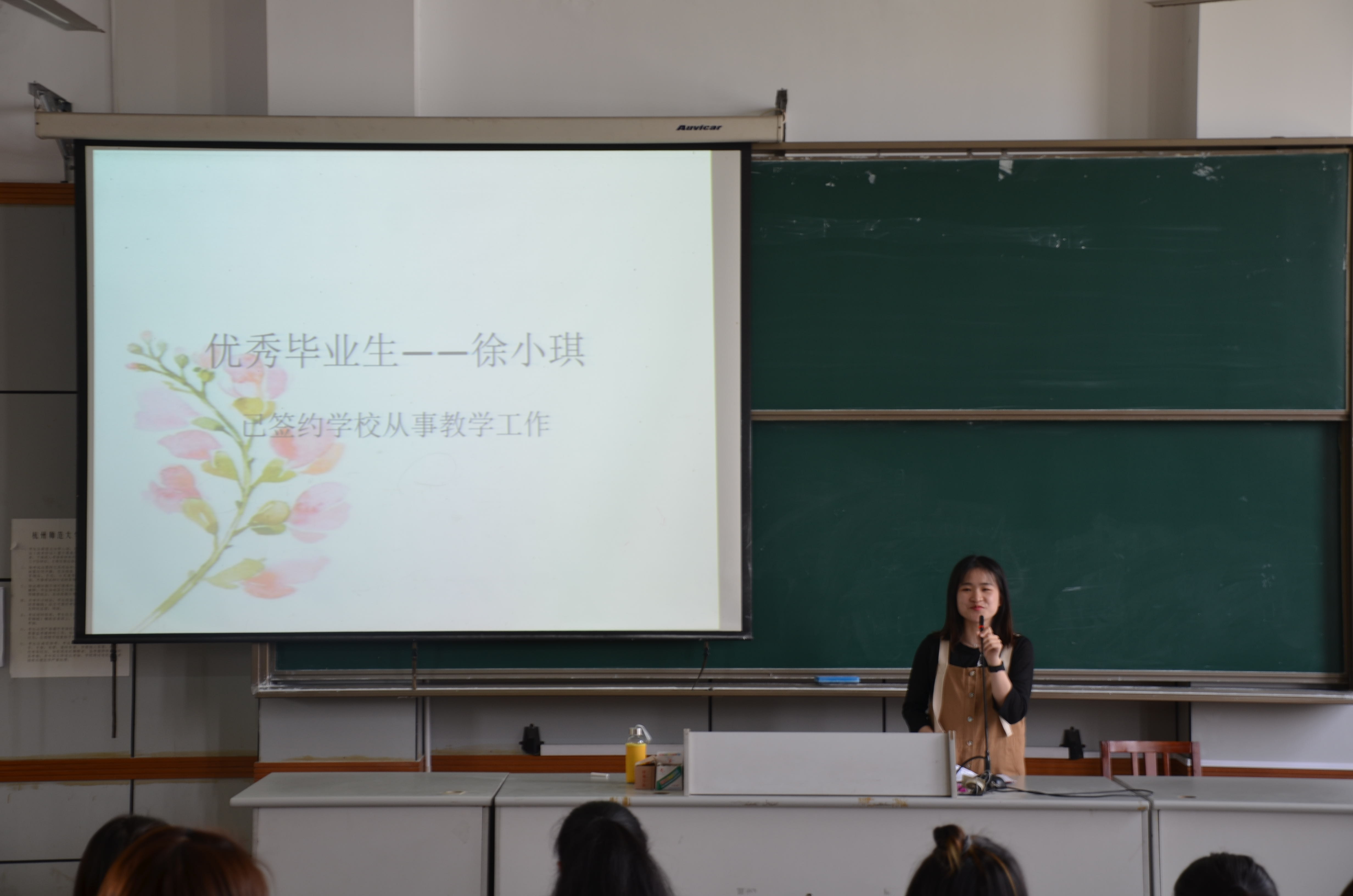 徐小琪学姐是全国师范生技能大赛一等奖获得者,已签约学校进行教育工作。她从自身角度出发,分享了她自己的经历与想法。已经成为一名人民教师的她,提醒我们要跟从自己的内心,将有限的时间花在更有意义的事情上。在大三的时候要坚定自己的目标,不管是考研还是找工作,只要确定了,就大胆的往前走,也不用急切,要相信是金子总会发光的。