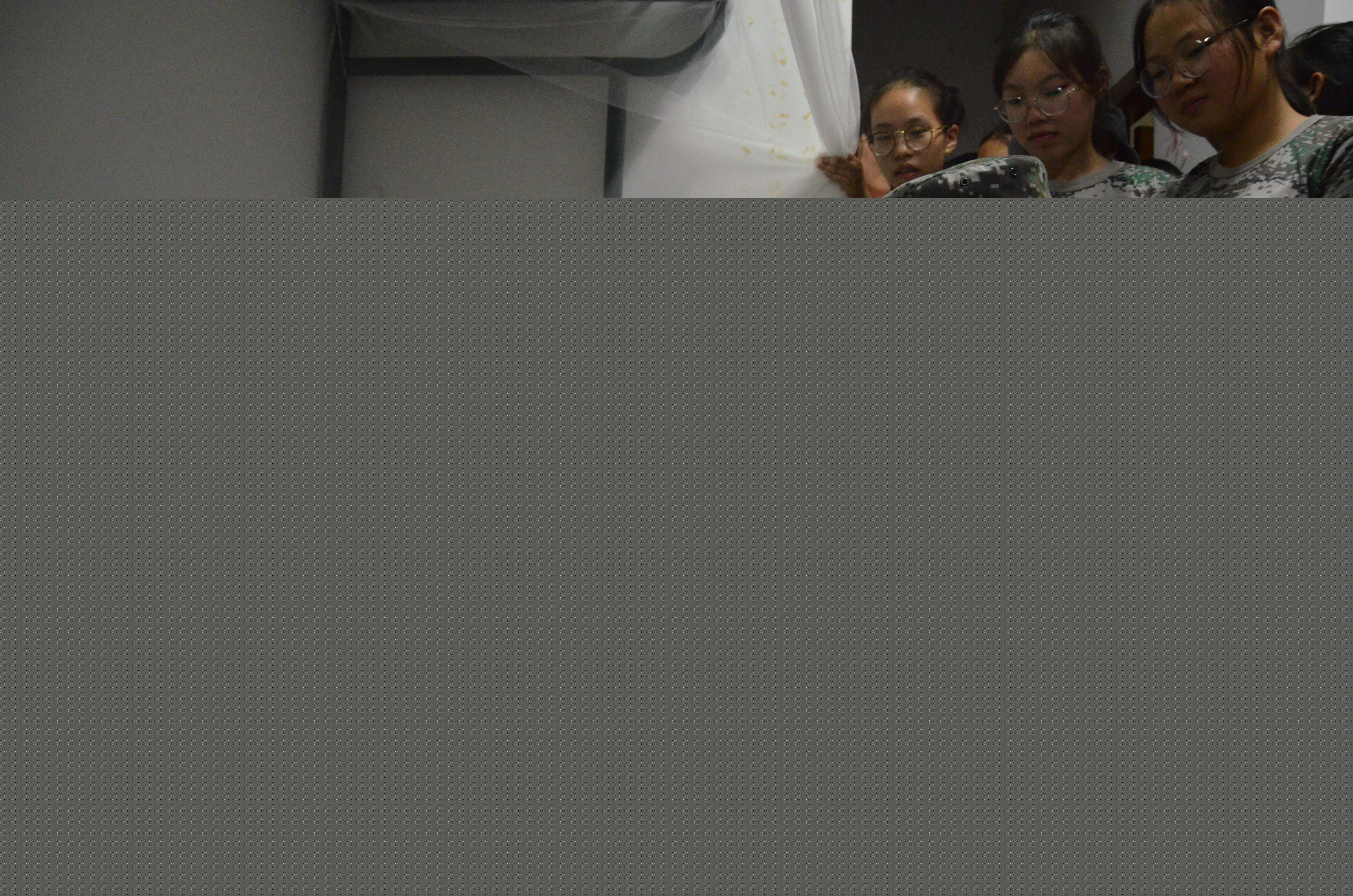 首先,教官们对床铺的整理提出了具体的要求:被褥要平,不能有折痕,被褥边缘不能越过床缘,蚊帐平时应高高挂起,被子、枕头叠放整齐等。讲解过后,教官又亲自示范:如何摊平被褥,如何将被子叠成豆腐块以及被子与枕头的摆放位置。当一个完美的豆腐块在教官手中诞生时,引来了同学们的阵阵惊呼,以及热烈持久的掌声。