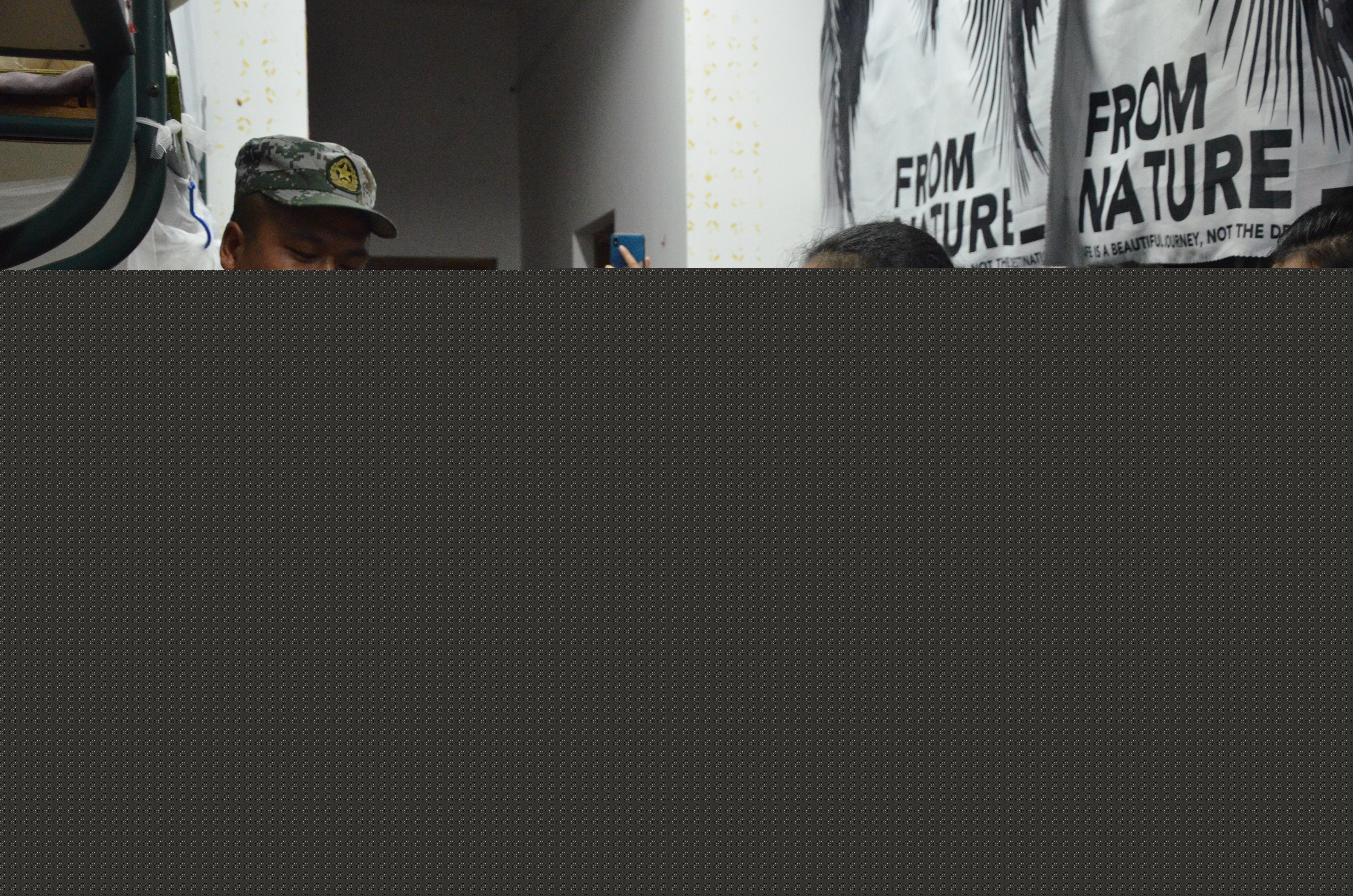 教官们在指导新生内务时,偶尔会提及自己在部队中的宿舍生活,同学们听的津津有味,十分向往。很快,内务整理指导结束,教官们离开之际,现场响起了经久不歇的掌声,同学们异口同声地向教官们道谢,并将他们送出了寝室门外。