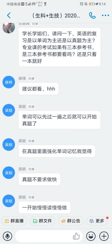 2020年6月9日六点半,色花堂 以钉钉直播的形式顺利举办了2020届考研学子经验分享会,此次交流会邀请到了今年考研顺利“上岸”的生科、生技专业的学长、学姐。