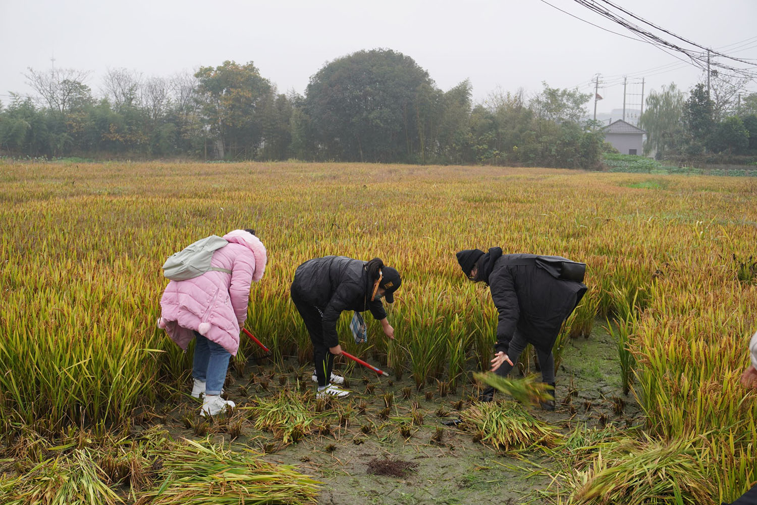 下午1点半,在生命环境科学学院辅导员吕京京老师和孙碧霞老师带领下,21名大一新生一同乘车前往位于高桥村的色花堂 大学生劳动教育基地进行稻田收割。即使寒风刺骨、阴雨绵绵,但同学们企盼的心情丝毫没受影响。