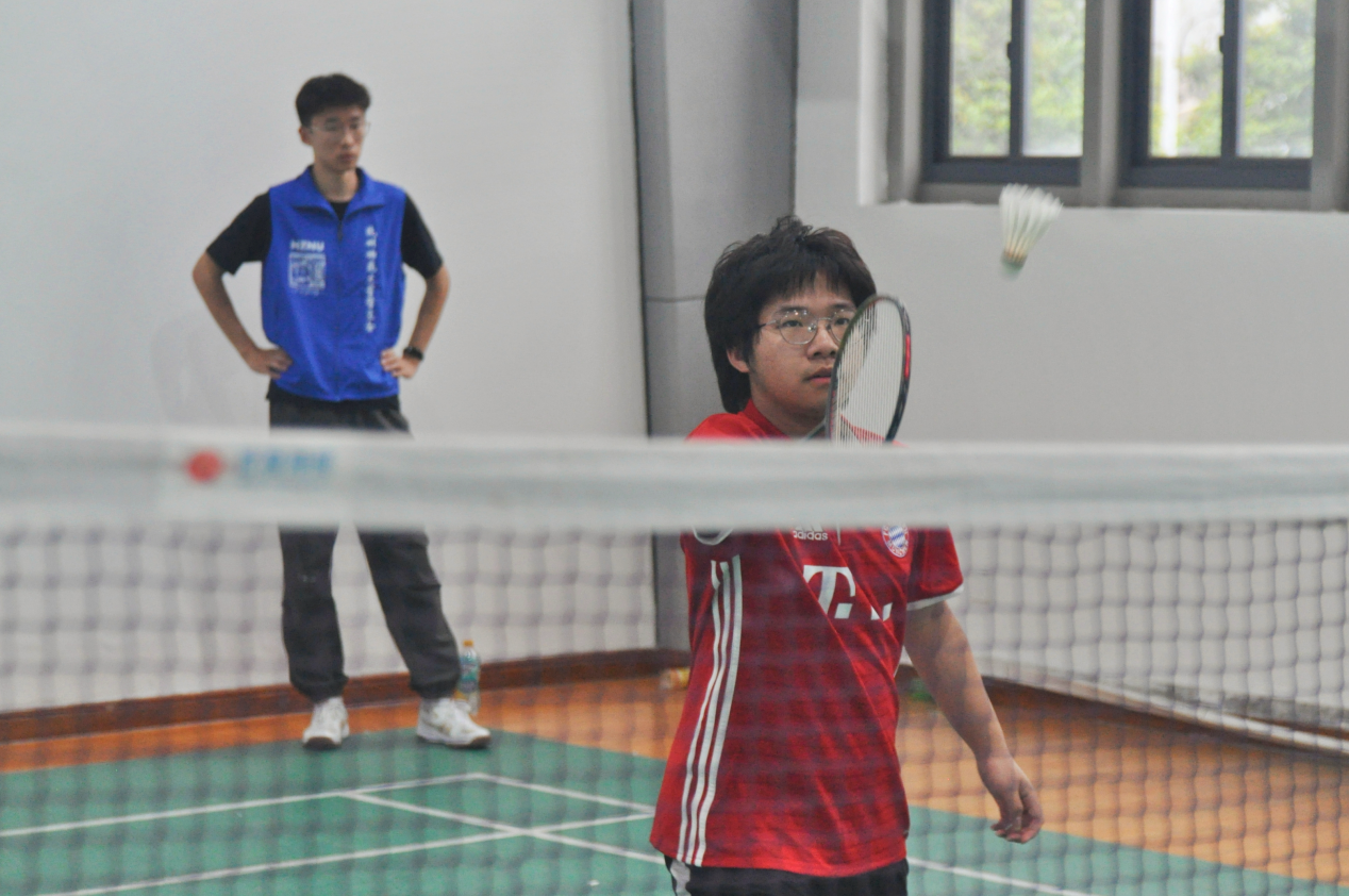 在男子羽毛球比赛中,吴博文和项俊昊两位选手虽然惜败,但是他们拼搏的身影在同学们心中留下了深刻印象。