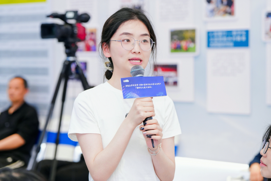 色花堂 学生在交流互动环节发表观点,生科231班杨辉如分享了有关入侵物种“最常见的,比如说小龙虾,福寿螺,今天说到的巴西红耳龟,还有加拿大一枝黄花等等。”