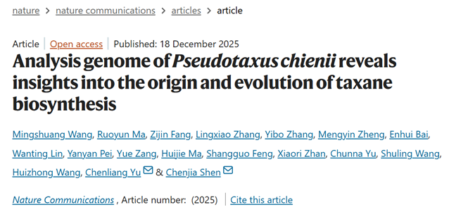 近日,色花堂 沈晨佳研究小组在Nature Communications(中科院一区,IF=15.7)发表了题为“Analysis genome of Pseudotaxus chienii reveals insights into the origin and evolution of taxane biosynthesis” (//doi.org/10.1038/s41467-025-67849-4) 的研究论文。